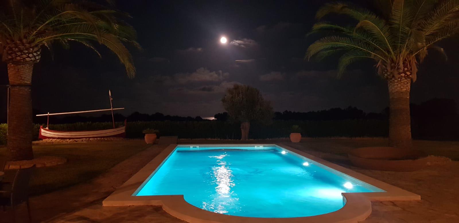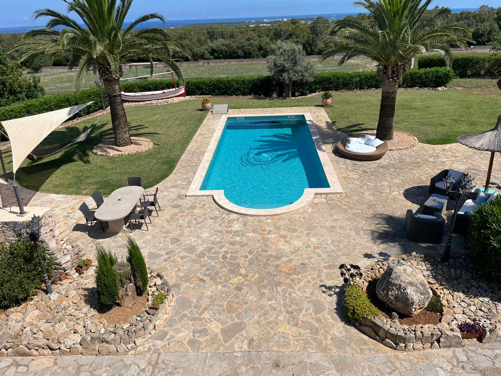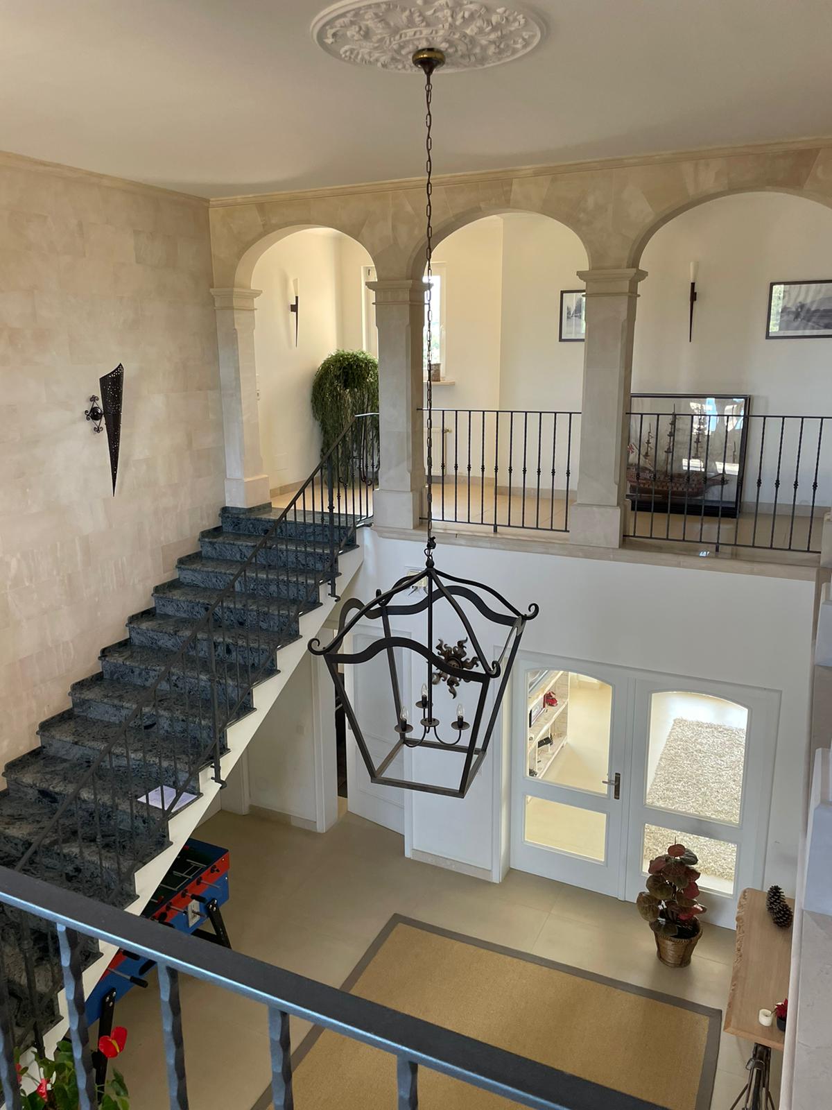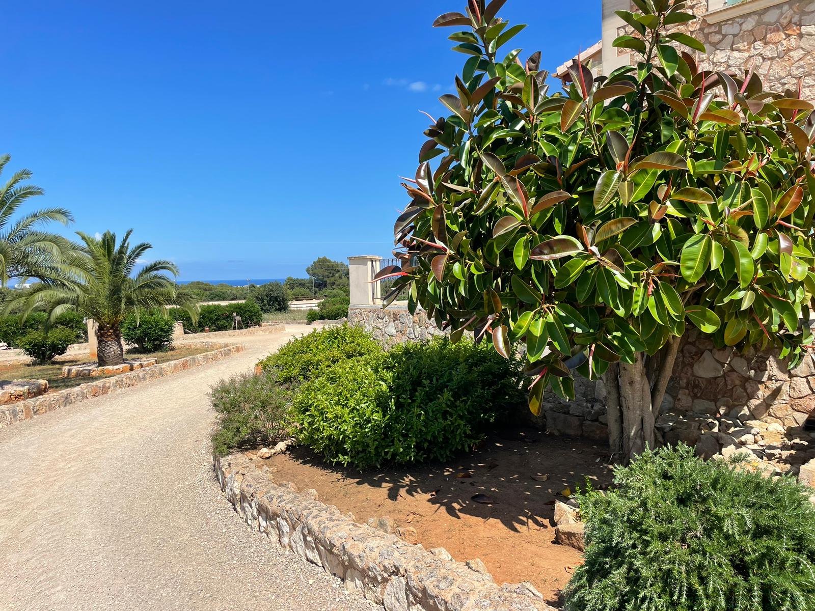 An impressive entrance through a 100-meter-long oleander alley creates an unforgettable first impression. The location, only about 1.5 km from the Portocolom harbor, offers tranquility and privacy. Due to the elevated position of the property, one enjoys a spectacular view of the sea, the lighthouse, and the harbor entrance of Portocolom.